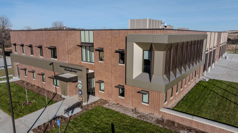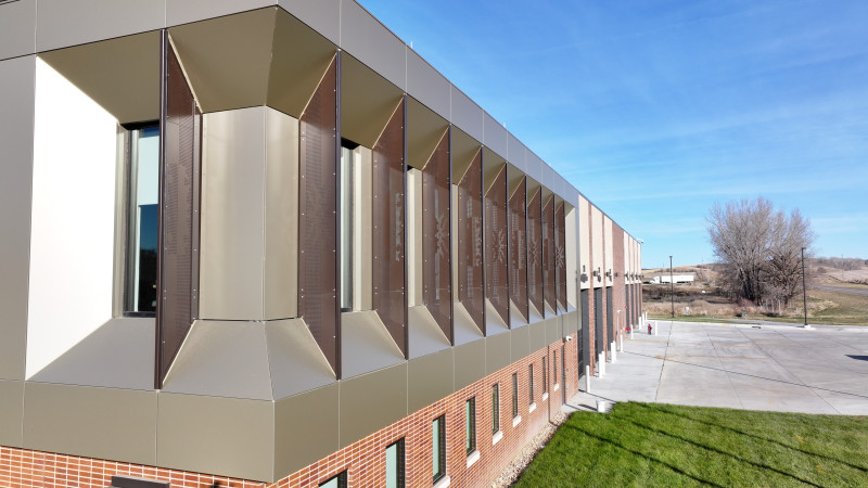 REVAMP Decorative Metal Sunshade and Screening Panels for a Public Safety and Judicial Services Complex.