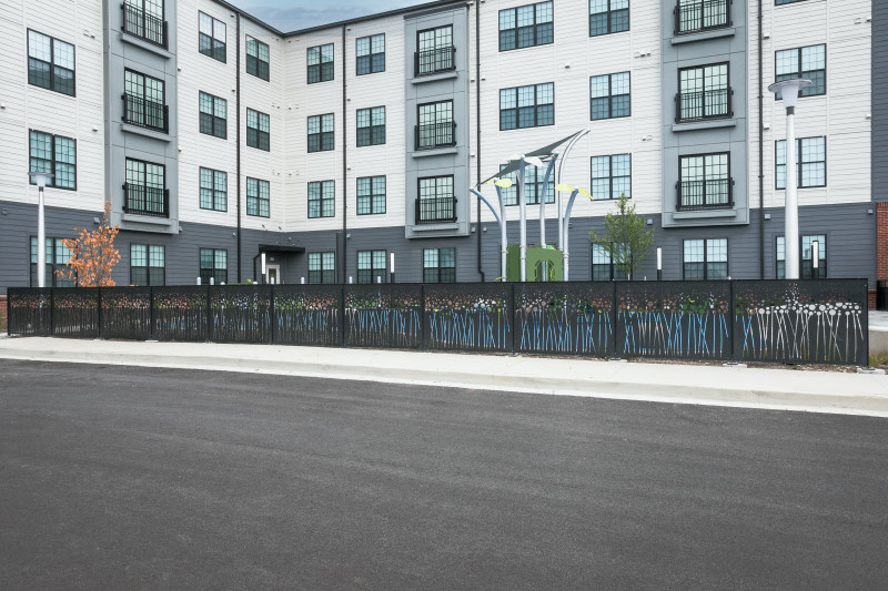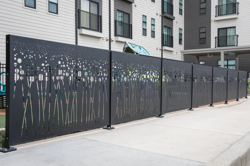REVAMP Security Gate and Screening including wall panels and standoff bracket attachment at apartments by InHaus Development and Elemental Design.