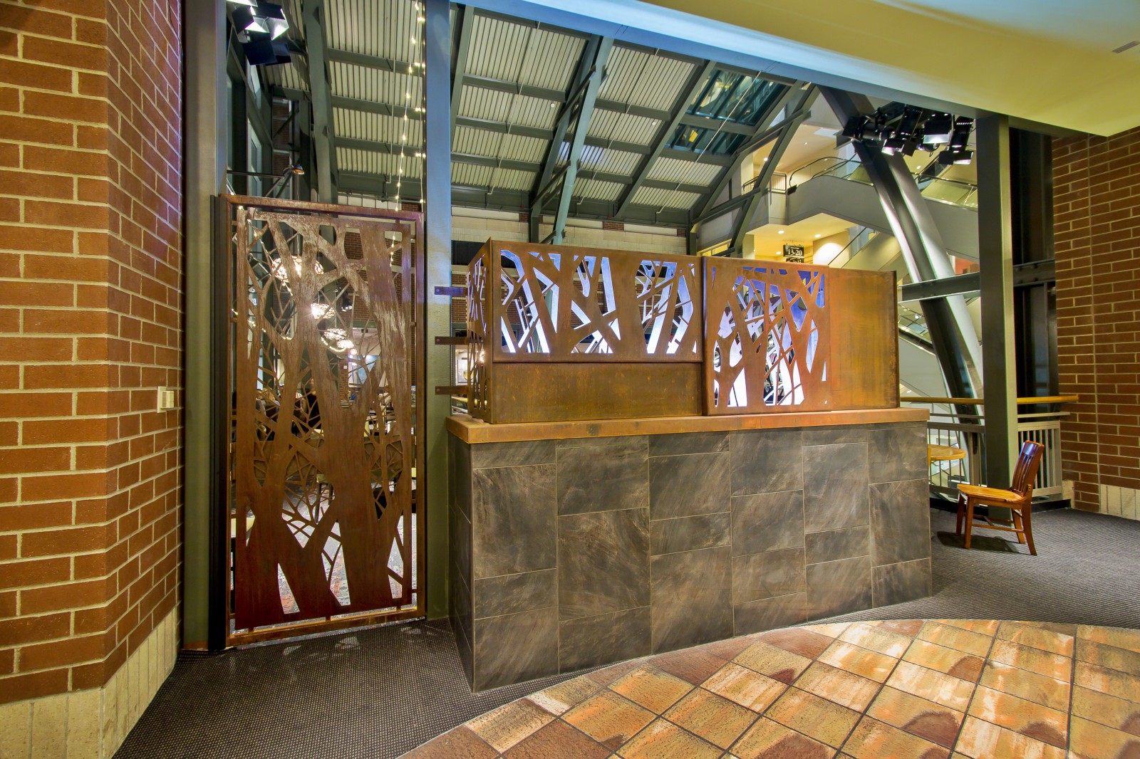 REVAMP's screen panels and assemblies will be designed to fit your project's needs. In addition to custom patterns we can incorporate branding and wayfinding into your screen panel design. Our design and engineering team is skilled at devising unique installation and mounting solutions. We can fabricate Functional Metal Art screen panels and assemblies to exact specifications including curved panels, hinged screen panels and more. We can even help you develop a standard screen panel or assembly for modular and repeated installations.