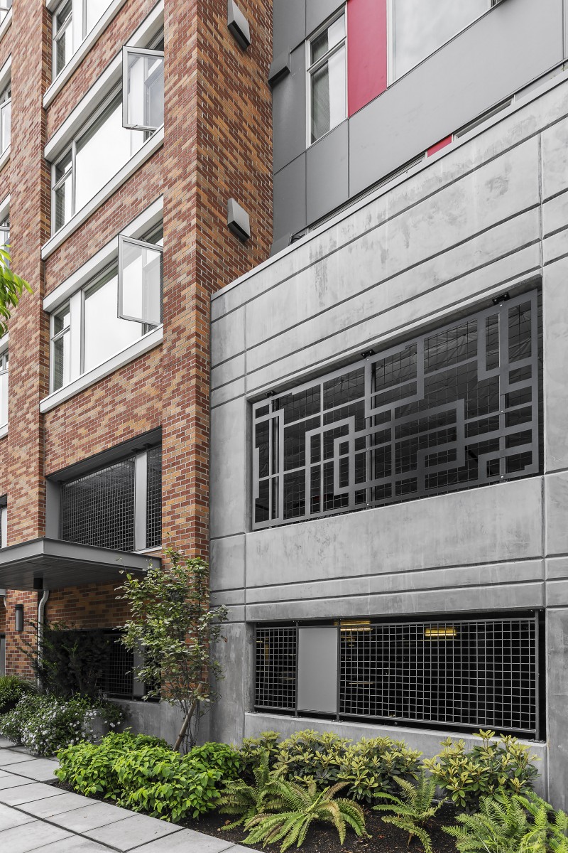 This REVAMP screen system is typically used in parking garage and other concrete structure applications. Its design allows for cost-efficient and quick installation of laser-cut decorative screens. Simple install is achieved with attachments to header and curb using our adjustable post system, which is designed for substantial flexibility during installation through the use of slotted holes. The screen panels are then fastened to the adjustable posts.