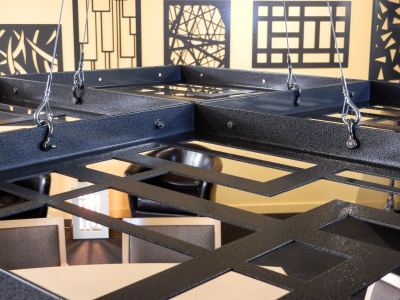 REVAMP metal clouds are a versatile accent for rooms with high ceilings. You can use Functional Metal Art to obscure unsightly ductwork and conduits from view, create the illusion of a lower ceiling height for a cozier room atmosphere, add interest and depth to lighting fixtures and provide a unique shading feature for skylights, storefronts and windows.