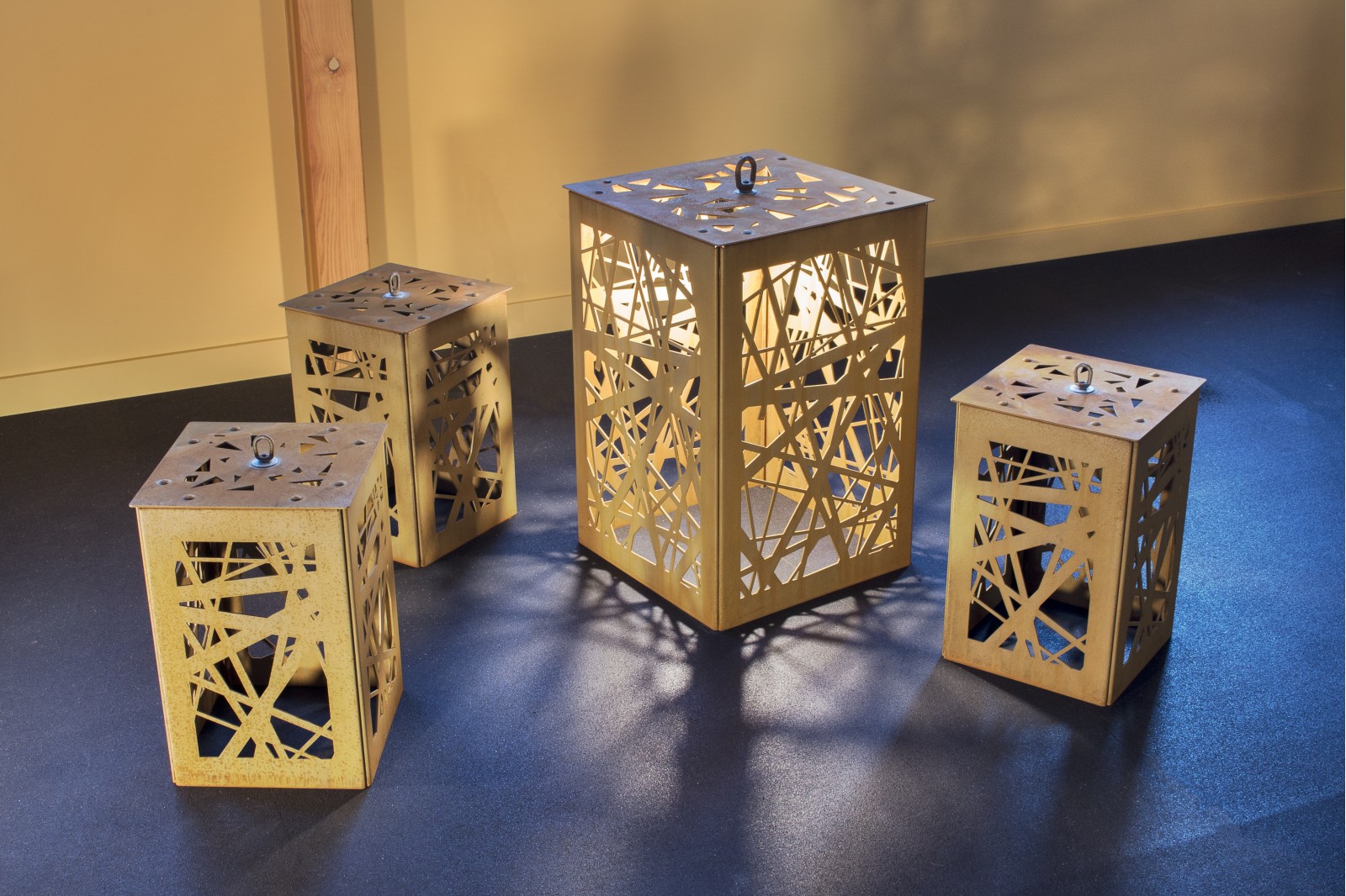 Your project's lighting can be a bright focal point with REVAMP Light Shades! Fabricated from corten with a rust patina, these striking laser-cut shades are perfect accents, whether placed as single highlights or grouped. They can be coordinated with your other REVAMP products to create a theme that carries throughout your project's design features. A licensed electrician can also add UL-approved light fixtures to turn the Functional Metal Art shades into lanterns that throw intriguing shadows onto walls, ceilings and floors. Cost efficiency is achieved with groups of 5 or more - placing them throughout your project ties all areas together to create a cohesive appearance.