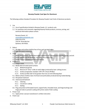 Drawings and specifications delivered electronically are provided with permission to specify Revamp Panels and products only. Revamp drawings and specifications are not provided for general reference or design intent use. Any disclosure, reproduction, copying, distribution or other dissemination or use of this communication in whole or in part is prohibited. Any unauthorized use of Revamp drawings and specifications is subject to copyright infringement and punishable by law per 17 U.S.C. 501 (A) (B); 503-506.
